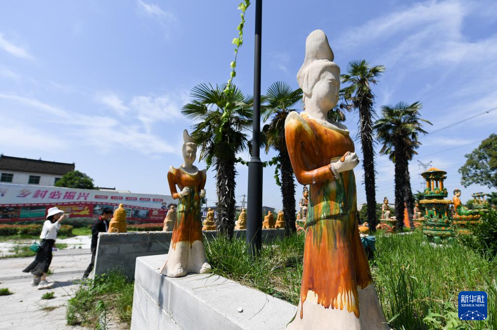 6月6日,游客在南石山村的“三彩小镇”参观。