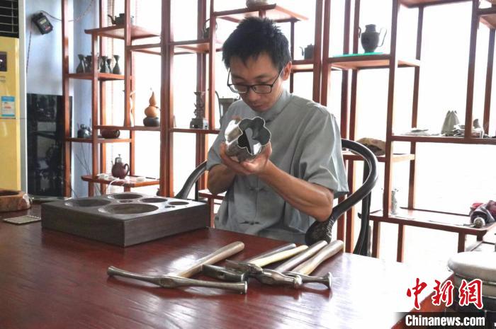在这方面,王圣良的儿子、“凤王祥”锡雕第九代传承人王绪贤与父亲的观点不谋而合:“创新需要贴近生活,锡雕作品要做到看起来舒服,用起来也舒服。”