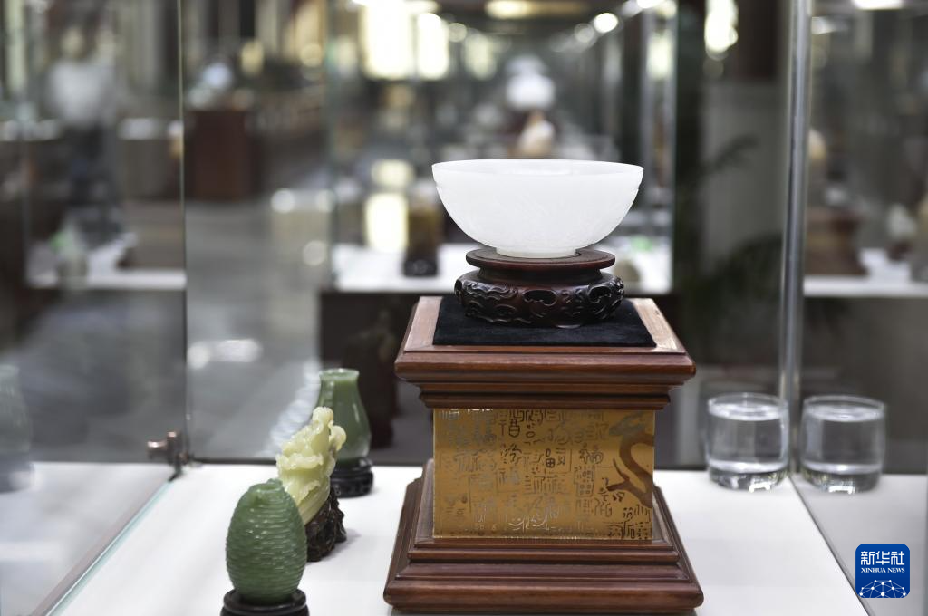 这是在位于河南省镇平县的中国玉雕大师创意园展厅内拍摄的玉雕作品(8月16日摄)。