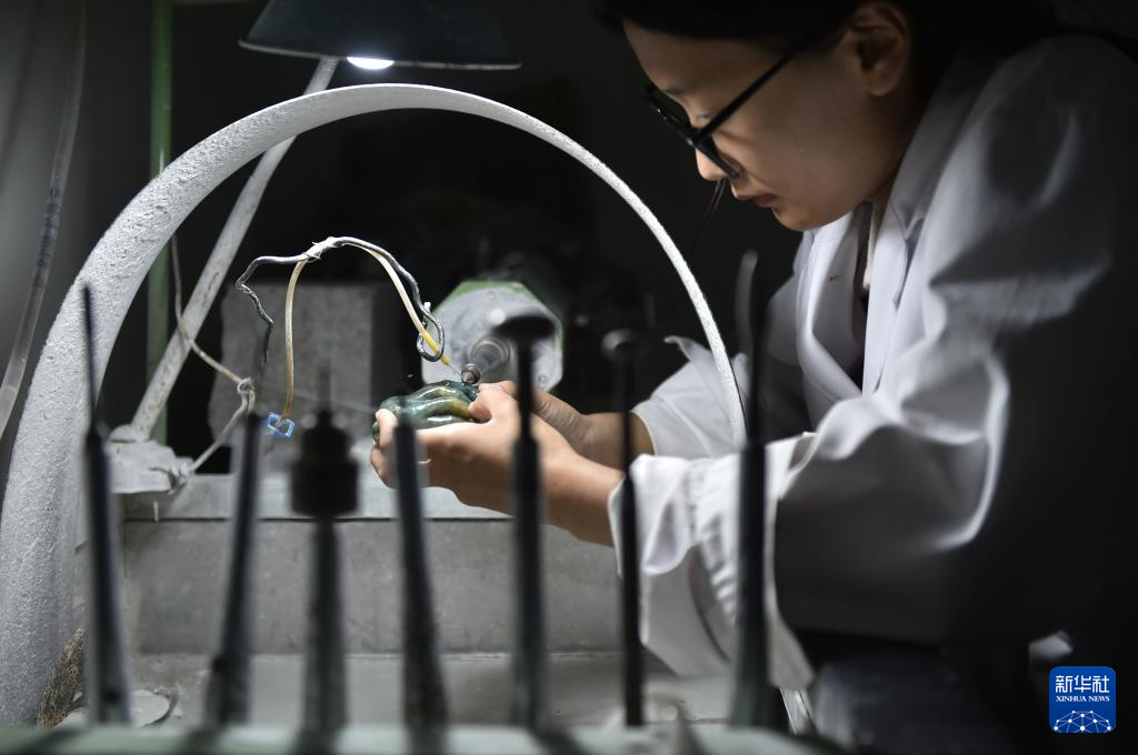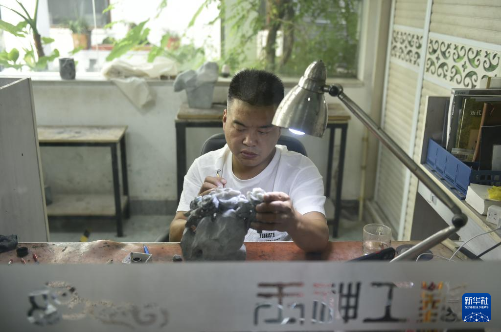 河南省镇平县素有“中国玉雕之乡”的美誉。近年来,该县积极发展新型业态,拉长产业链条,推进产旅融合,助力玉文化特色产业高质量发展。目前全县共有玉雕专业村50个,玉雕专业户近1.5万户,成为国内知名的玉雕产品加工、销售集散地。(新华社记者 鲁鹏 摄)