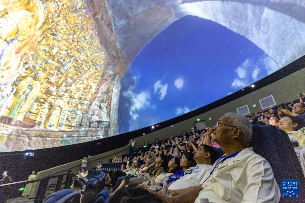 8月19日,嘉宾在重庆市大足区观看8K球幕电影《大足石刻》。新华社记者黄伟摄