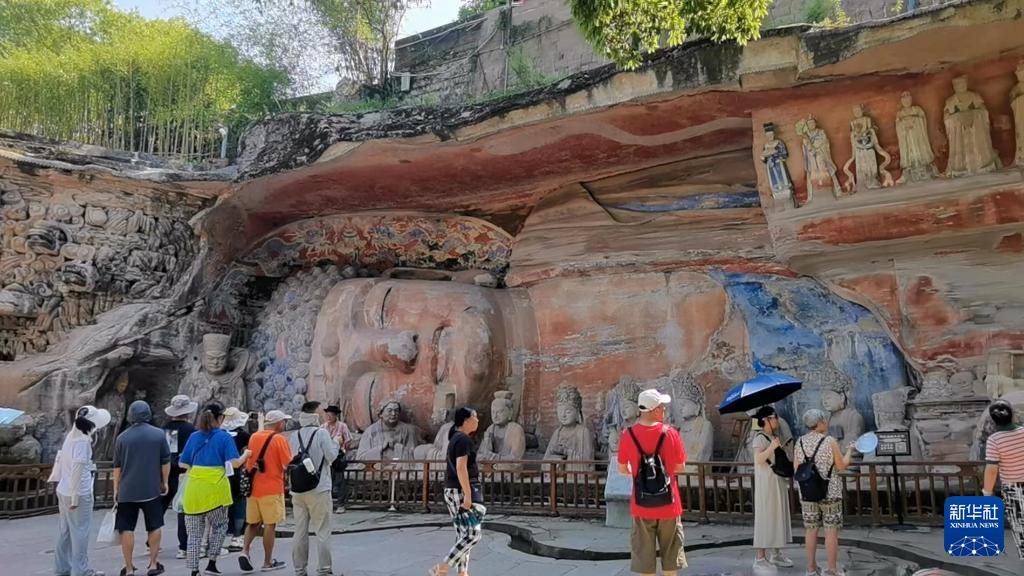 8月19日,游客在大足石刻宝顶山景区参观。新华社记者杨湛菲摄