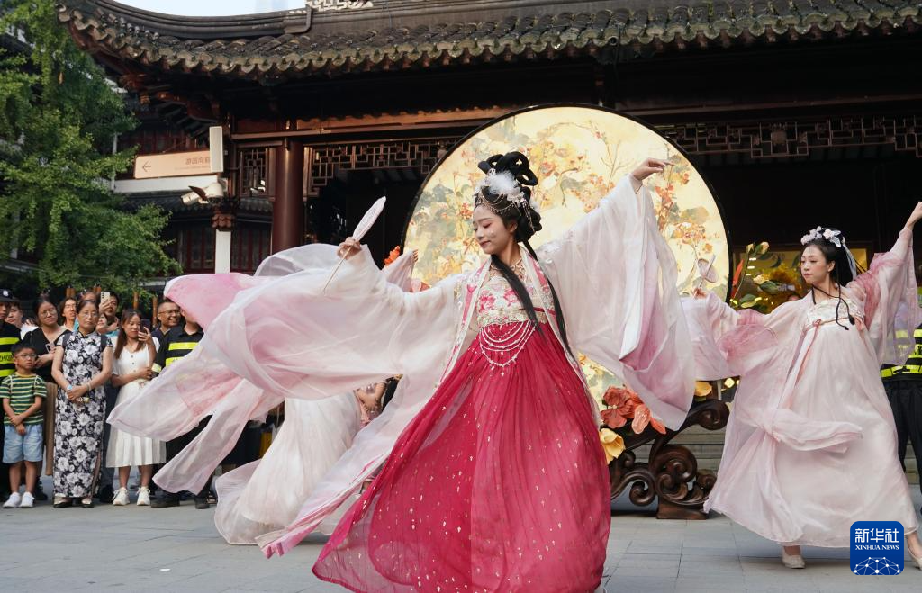 9月17日,演员在豫园商城中心广场表演国风舞蹈。