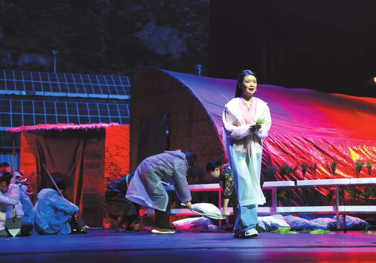 话剧这种艺术样式,要抵达一个成熟的高度,不容易,需要十分强烈的艺术表现力和高度的矛盾冲突呈现。能不能让观众看的时候动容,看完还能留下印象,就有了施展拳脚的余地。把人物置于矛盾的漩涡,才能突出人物形象。这个适用于小说创作,同样适用于剧本塑造。只有在矛盾的漩涡中,人物才能成长,观众才能买账。这一点,《三棵树下》做得可圈可点。无论是一开始大雨对蔬菜大棚的极大毁坏,还是曹民财不折不挠的坚持“退股”,甚至是城里男友的不理解、提出分手,都是加剧矛盾、让农学专业毕业的女大学生李小雨这个人物形象更加丰满圆熟的重要手段。