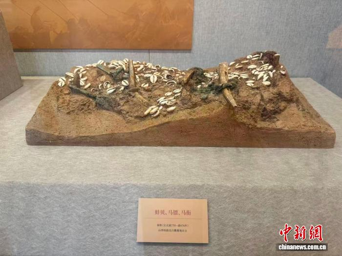 2月10日,“黄土寻骏——山西出土马文物展”在山西考古博物馆开展。图为出土于山西垣曲北白鹅墓地的一组马镖、马衔、蚌贝。 中新社记者 杨静 摄