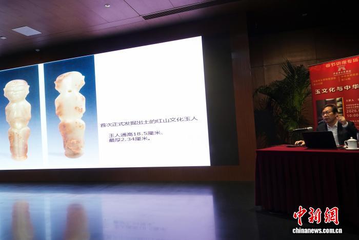 2月22日,中国考古博物馆春节讲座专场,刘国祥研究员作“玉文化与中华文明”主题学术报告,介绍红山文化玉人。中新网记者 孙自法 摄