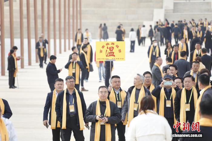 2025年3月31日,农历三月初三,乙巳年黄帝故里拜祖大典在河南新郑举行。图为温姓拜祖团入场。 中新社记者 阚力 摄