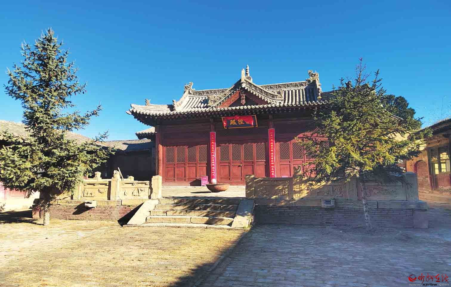 一进院布局,中轴线现存有正殿1栋,两侧建有配殿,西北角建有偏殿。正殿砖砌台基,面宽五间,进深六椽,七檩前后廊式构架,前檐斗拱为五踩,后檐为三踩斗拱,单檐悬山顶。前设月台,建有抱厦三间,单檐歇山顶。现新塑像3尊,正殿梁架有彩绘。
