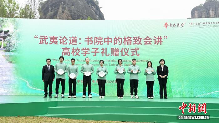 3月22日,第三届武夷论坛在福建南平武夷山开幕。图为参与论坛配套活动“武夷论道:书院中的格致会讲”高校学子礼赠仪式。 (中国人民大学供图)
