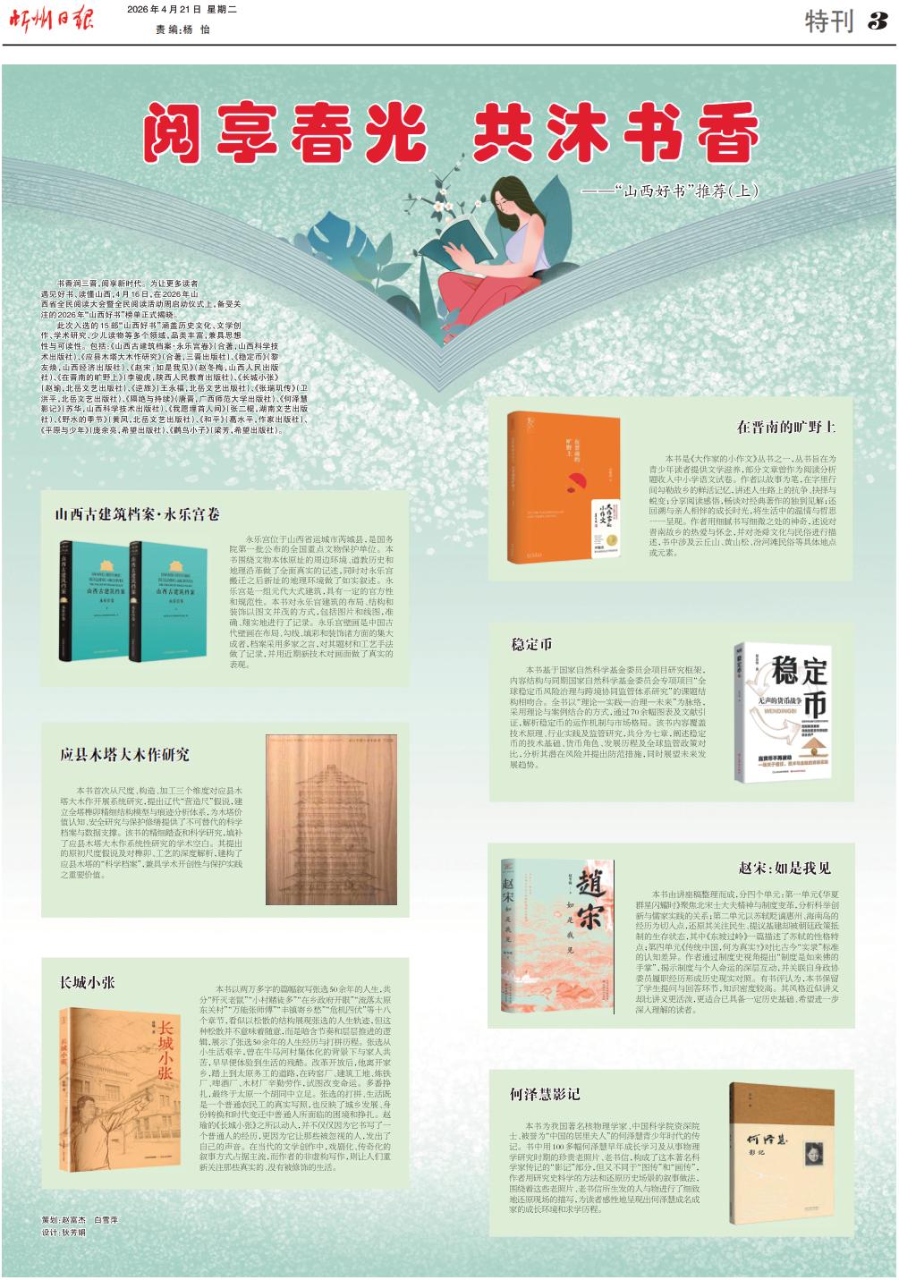 书香润三晋,阅享新时代。为让更多读者遇见好书、读懂山西,4月16日,在2026年山西省全民阅读大会暨全民阅读活动周启动仪式上,备受关注的2026年“山西好书”榜单正式揭晓。