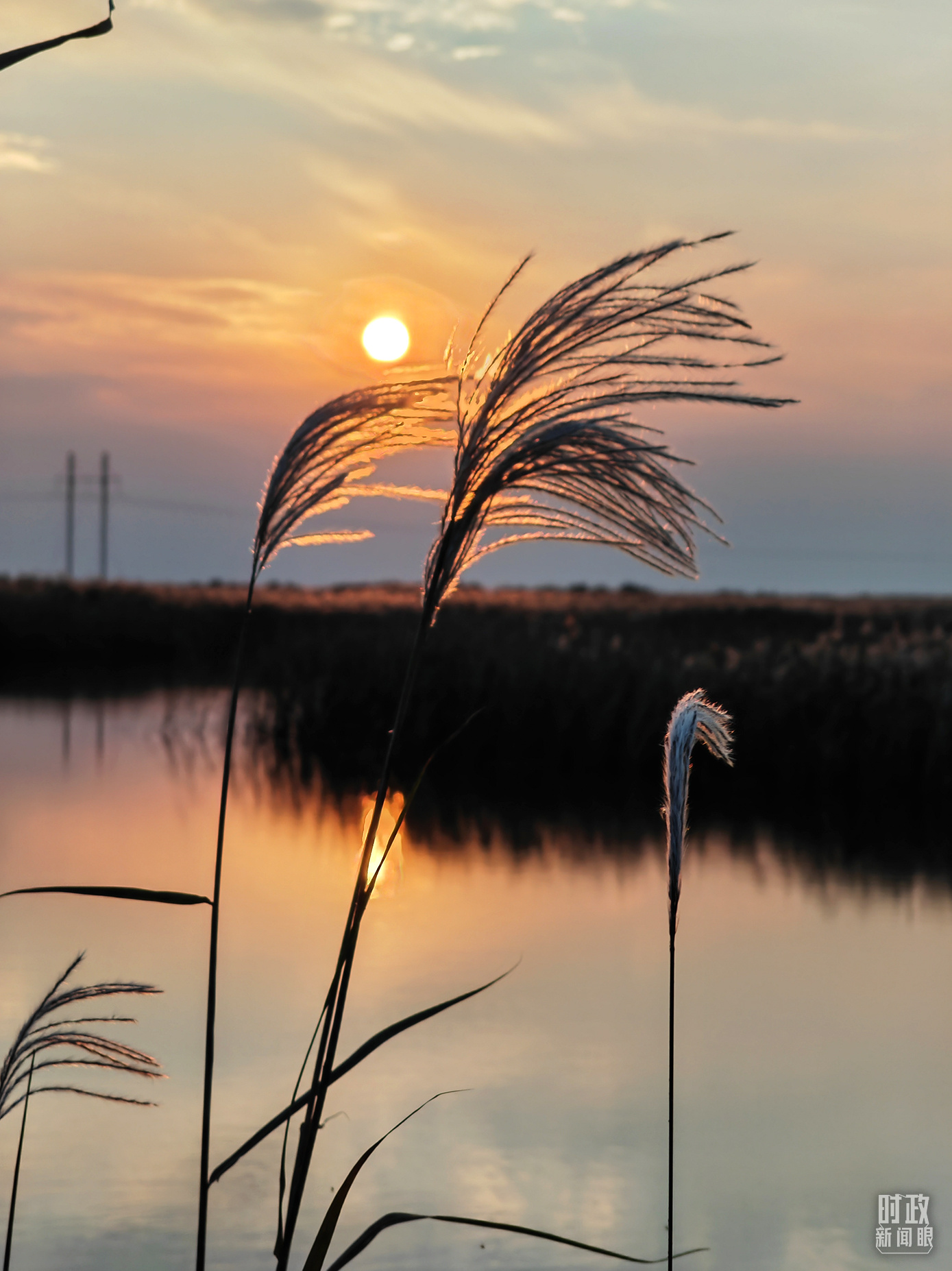 △2021年10月,习近平赴山东东营考察黄河入海口。黄河三角洲湿地,芦苇飘荡。(总台央视记者彭汉明拍摄)