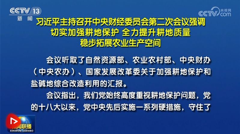 会议听取了自然资源部、农业农村部、中央财办(中央农办)、国家发展改革委关于加强耕地保护和盐碱地综合改造利用的汇报。