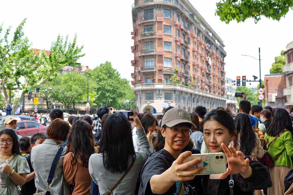 游客在上海武康大楼前拍照留念(2023年4月30日摄)。新华社记者 辛梦晨 摄