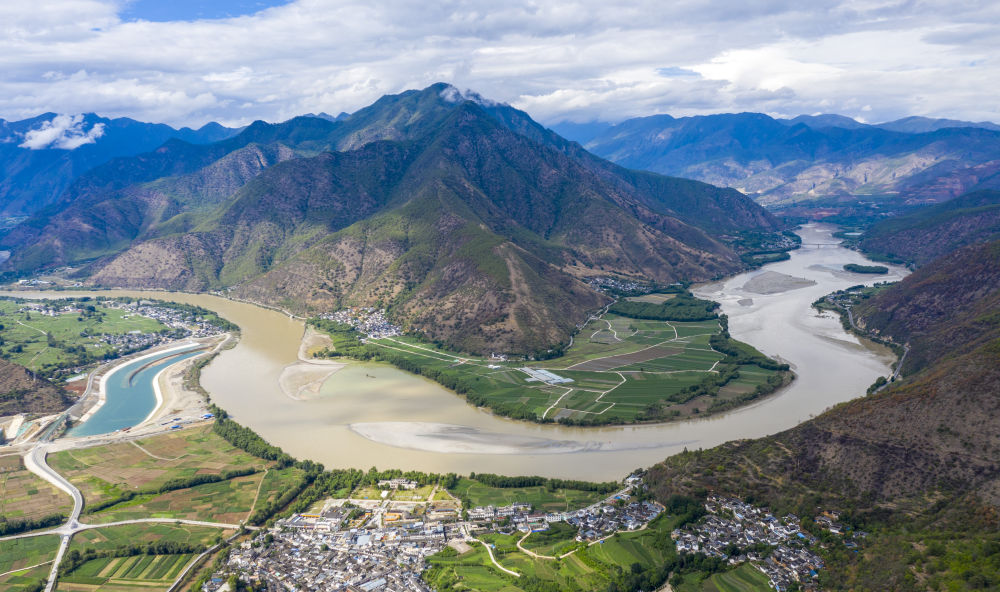 这是2023年6月15日在云南丽江市石鼓镇拍摄的金沙江景色(无人机照片)。近年来,地处长江上游的云南省着力打造绿色屏障,水土涵养工程、退耕还林还草、石漠化治理等多措并举,以确保一江清水绵延东流。