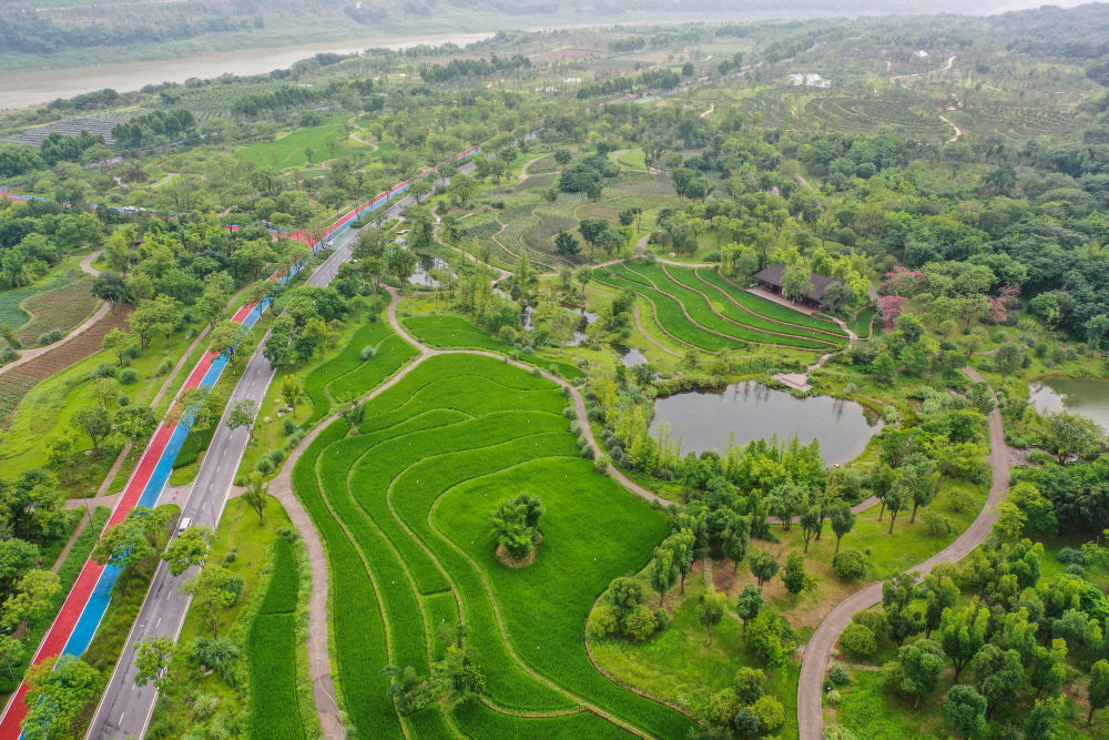 这是2023年7月3日拍摄的长江上游最大的江心岛重庆广阳岛景色(无人机照片)。广阳岛曾一度被规划为商业地产开发区。随着长江大保护的启动,当地政府按照“长江风景眼、重庆生态岛”的定位重新规划,开始系统修复生态。如今广阳岛跻身全国“绿水青山就是金山银山”实践创新基地。