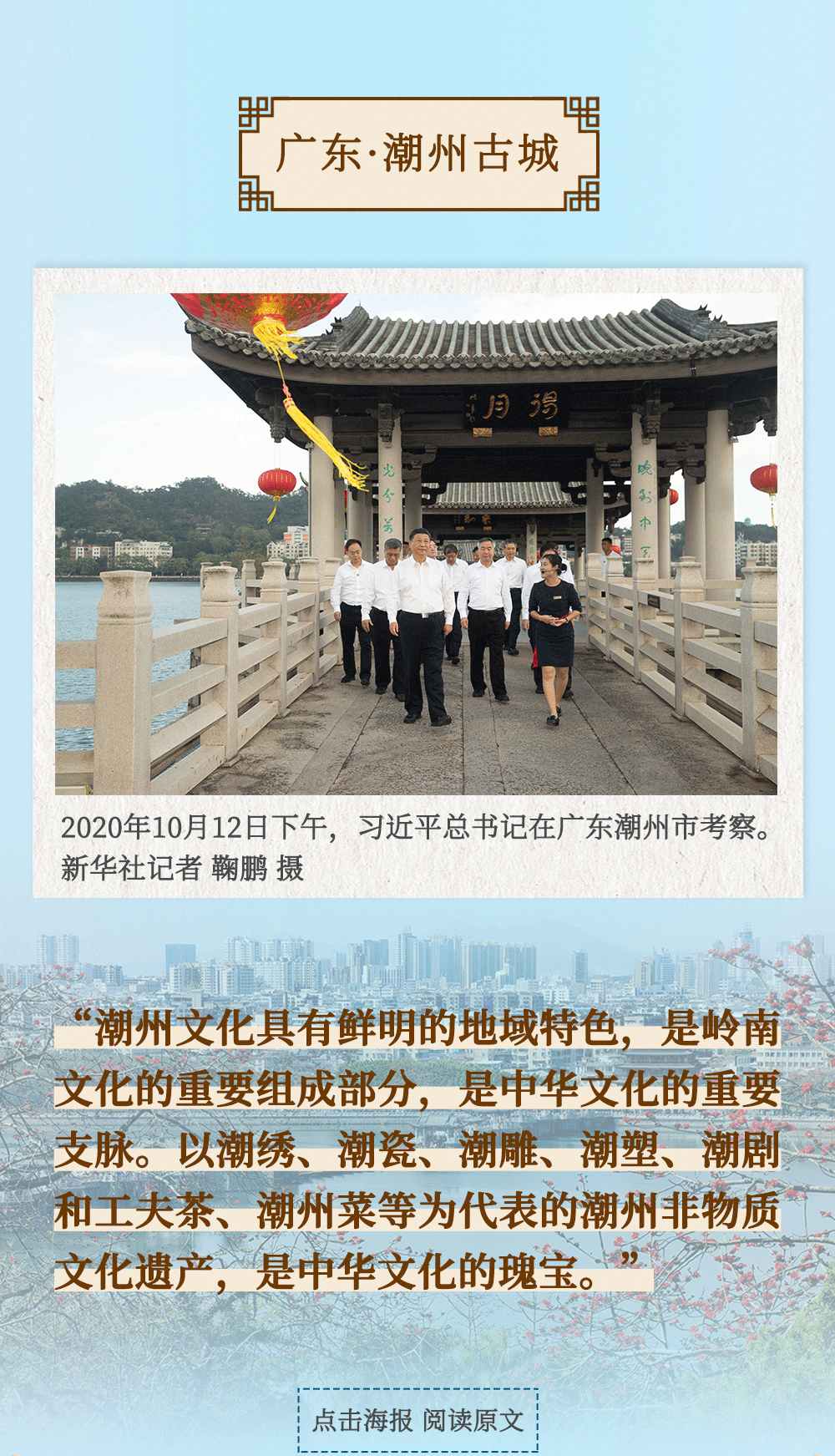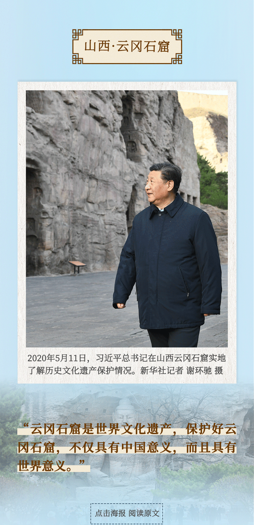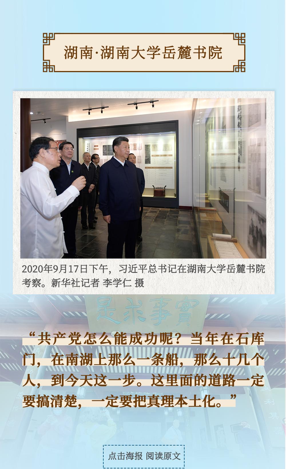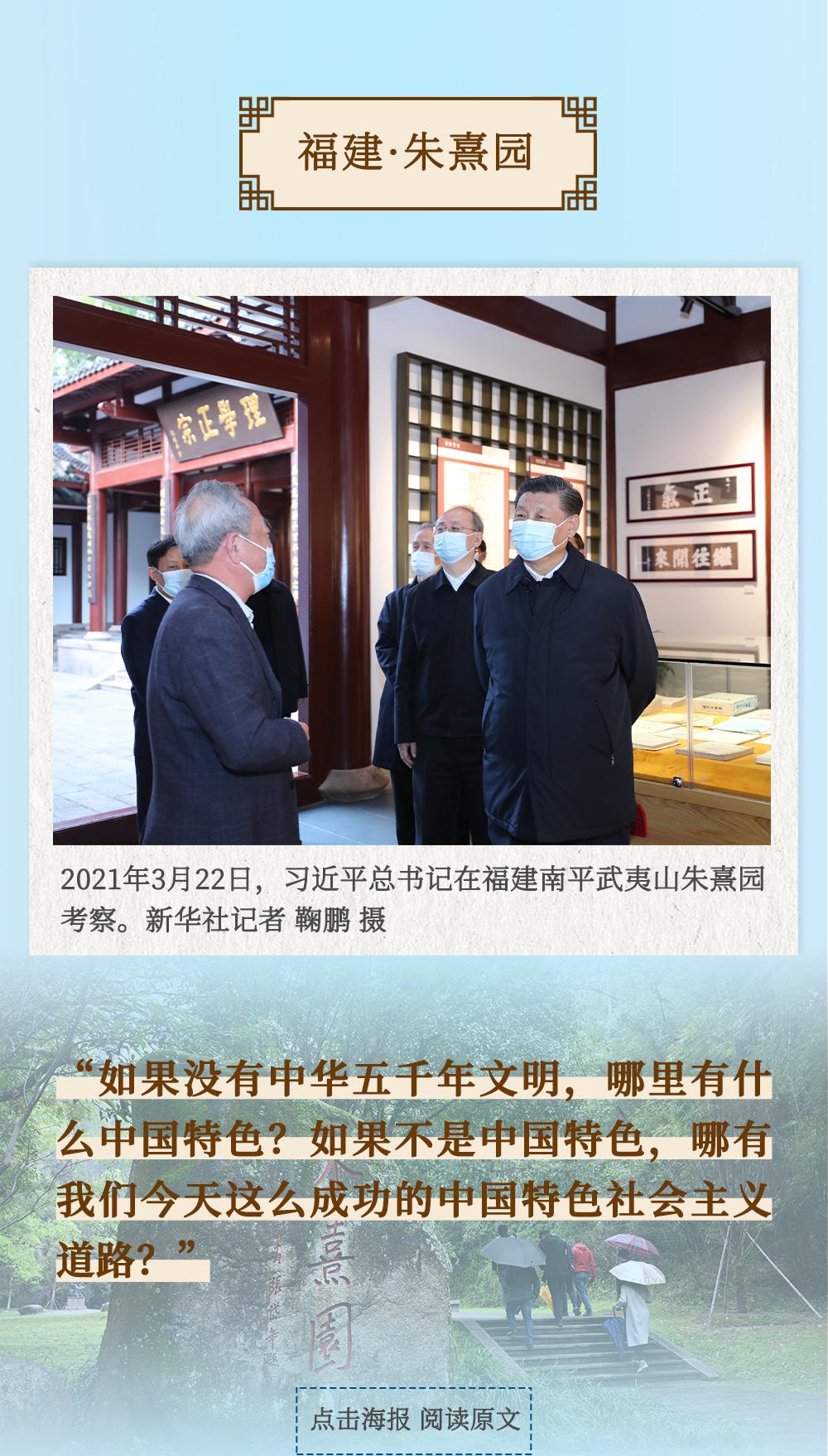 从四川三苏祠到河南殷墟遗址,从山东孔府、孔子研究院到湖南大学岳麓书院,从甘肃嘉峪关关城到福建朱熹园,从山西云冈石窟到广东潮州古城……考察文化遗产、探寻文明根脉,带着深厚的历史感,习近平总书记的“文化足迹”遍及全国。