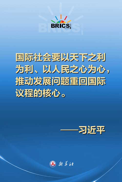 国际社会要以天下之利为利、以人民之心为心,推动发展问题重回国际议程的核心。要提高发展中国家在全球治理中的代表性和发言权,支持发展中国家实现更好发展。要坚持真正的多边主义,构建全球发展伙伴关系,为共同发展营造安全稳定的国际环境。