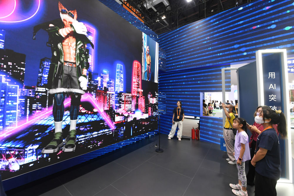 在国家会议中心综合展区,已连续4年参展服贸会的美国高通公司带来了5G、大语言模型、虚拟现实等同中国伙伴合作的最新技术成果。