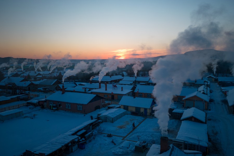 这是1月8日拍摄的漠河市北极村的清晨景象(无人机照片)。新华社记者 张涛 摄