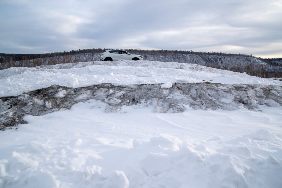3月17日,在漠河红河谷寒地试车基地,车辆在进行寒区试验。新华社记者 张涛 摄