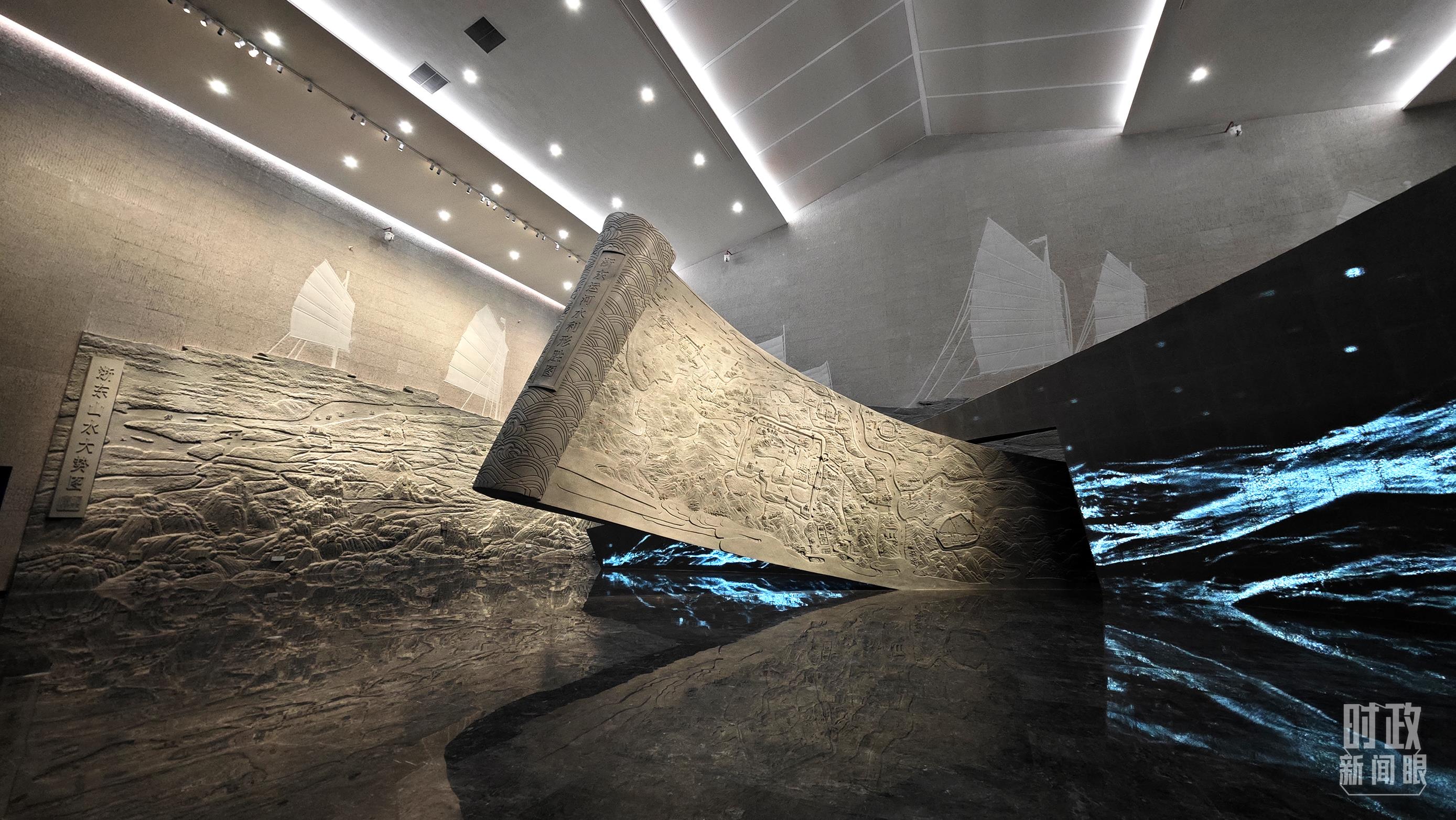 △博物馆内的《浙东运河水利形胜图》《浙东山水大势图》浮雕。(总台央视记者彭汉明拍摄)