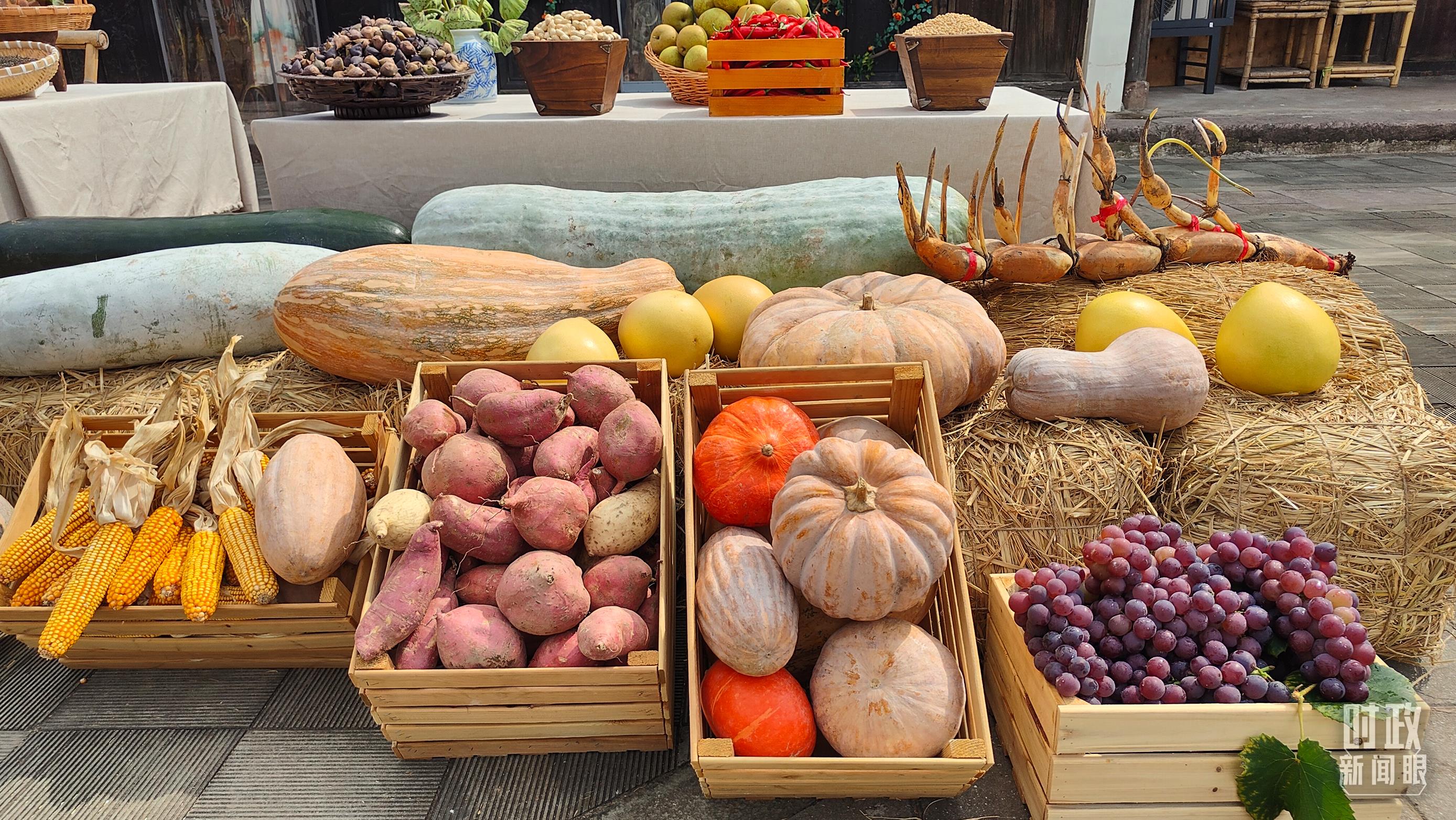 △村广场“共富市集”,摆放着种类丰富的特色农产品。(总台央视记者杨立峰拍摄)