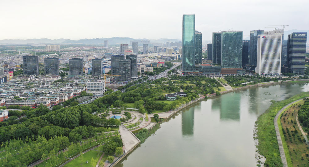 义乌国际商贸城与金融商务区。