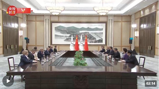 习近平指出,欢迎主席先生来华出席杭州亚运会。你是中国人民的老朋友、好朋友,担任国际奥委会主席以来曾多次访华,我们多次会面。你和国际奥委会长期支持中国奥林匹克运动和体育事业发展,我代表中国政府和中国人民表示衷心感谢。
