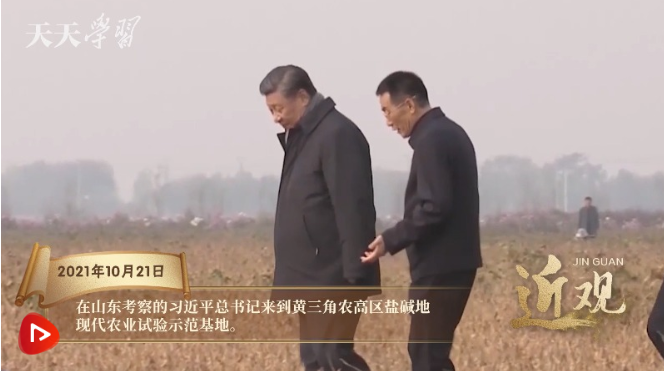 2021年10月21日上午,习近平总书记来到山东东营,踏上这片广袤的盐碱地。
