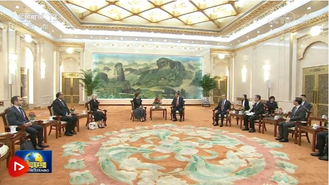 9月28日下午,国家主席习近平在人民大会堂会见联合国教科文组织总干事阿祖莱。