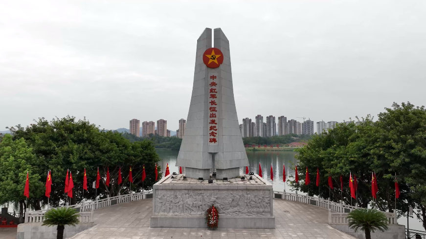 在位于江西省南部的于都县,流淌千年的于都河奔流不息,中央红军长征出发纪念碑屹立河畔。