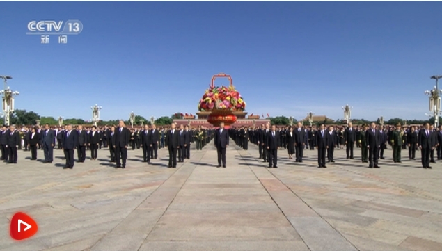习近平迈步上前,仔细整理花篮缎带。随后,习近平等党和国家领导人缓步绕行,瞻仰人民英雄纪念碑。