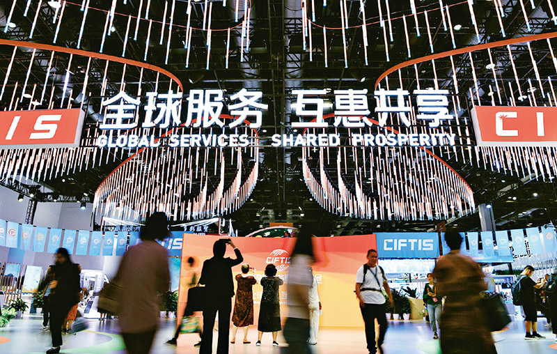 2023年9月2日至6日,中国国际服务贸易交易会在北京举行。图为9月4日,观众在服贸会北京国家会议中心展区参观。 新华社记者 武巍/摄