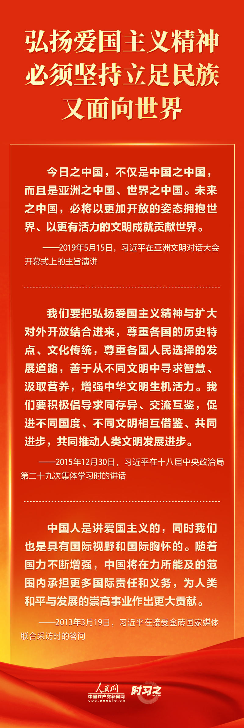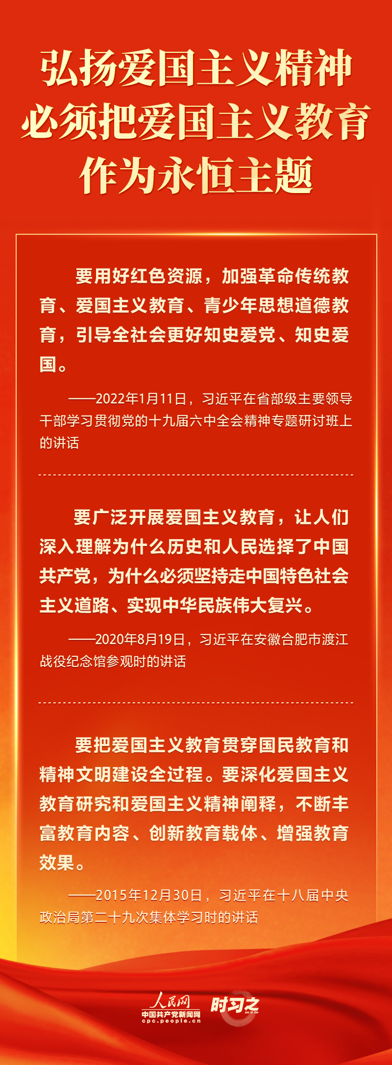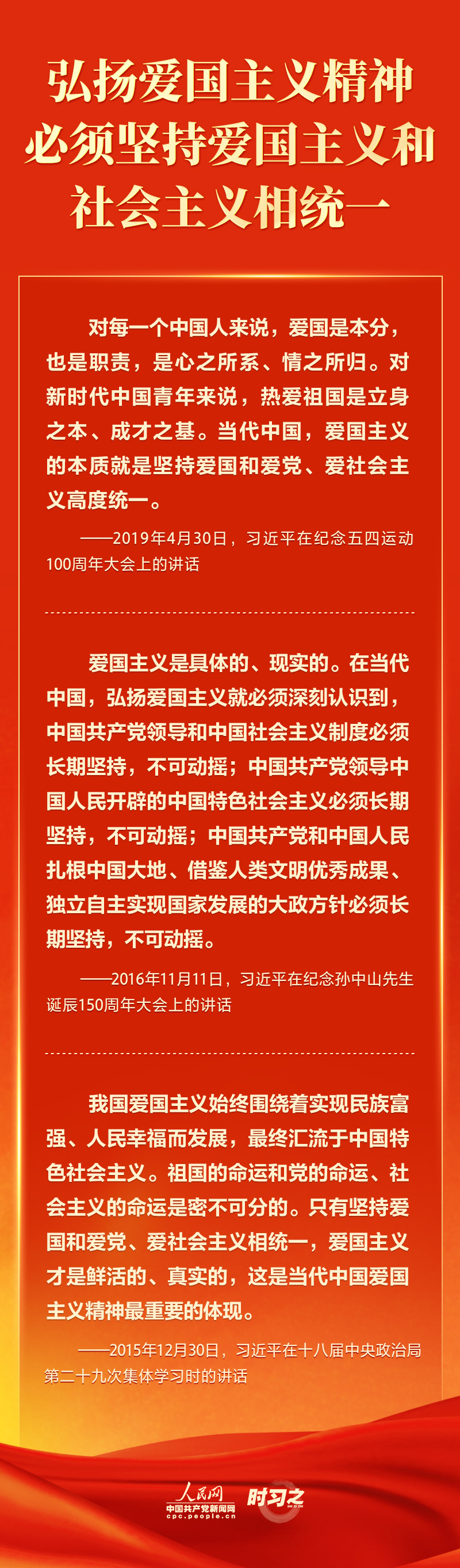 悠悠爱国情,拳拳赤子心。“爱国主义是中华民族精神的核心。”习近平总书记多次在不同场合强调“爱国”的重要性、要求弘扬爱国主义精神,引领中华儿女培养爱国之情、砥砺强国之志、实践报国之行。