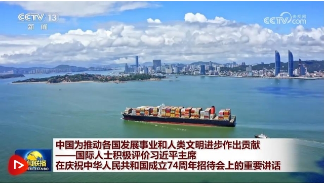 央视网消息(新闻联播):国际人士积极评价习近平主席在庆祝中华人民共和国成立74周年招待会上的重要讲话。他们表示,中国为推动全球发展事业和人类文明进步作出重要贡献,愿同中国携手,向着构建人类命运共同体的正确方向,开创人类更加美好的未来。