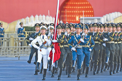 10月1日,隆重的升国旗仪式在北京天安门广场举行。新华社记者 鞠焕宗摄