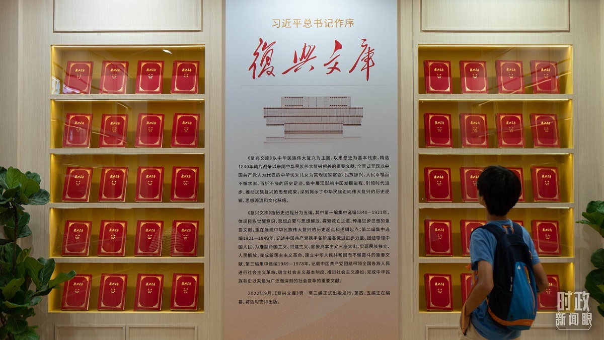 △2023年8月16日,2023上海书展开幕,书展设置的“复兴文库”主题书籍展示区吸引读者驻足查看。(图/视觉中国)