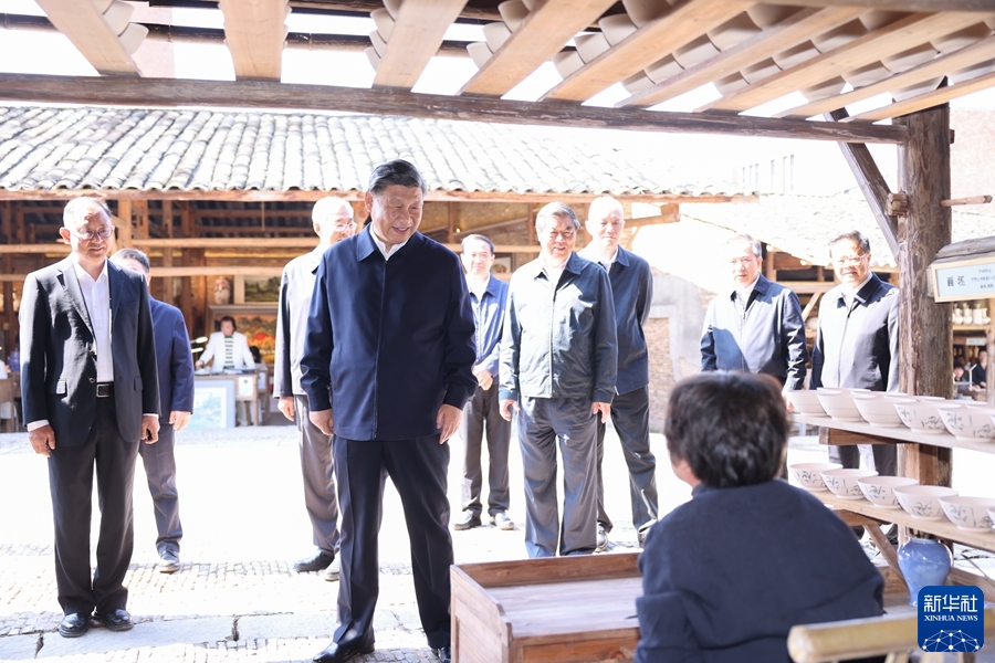 10月10日至13日,中共中央总书记、国家主席、中央军委主席习近平在江西考察。这是11日上午,习近平在景德镇市陶阳里历史文化街区考察时,同非遗传承人亲切交流。