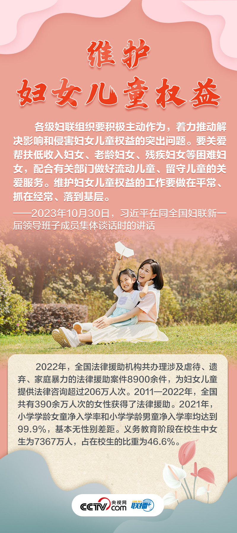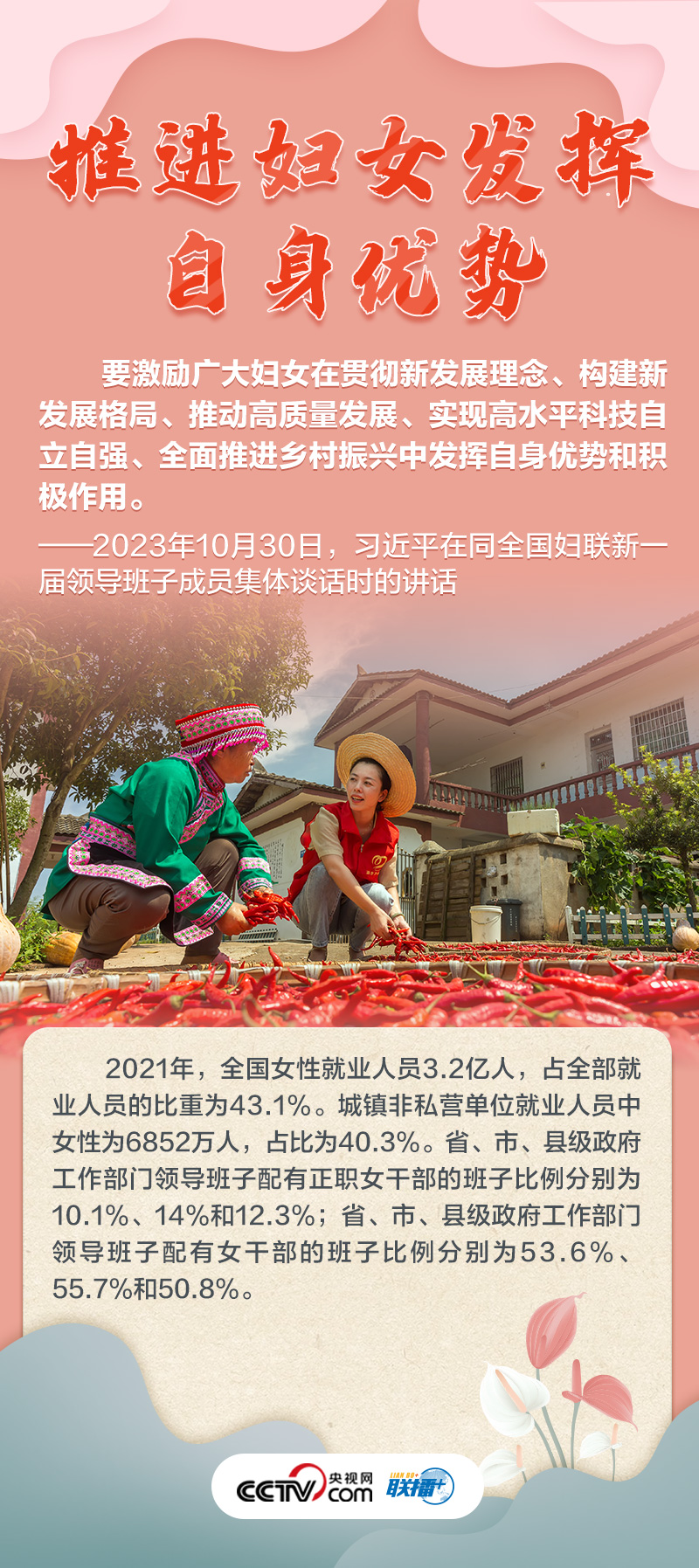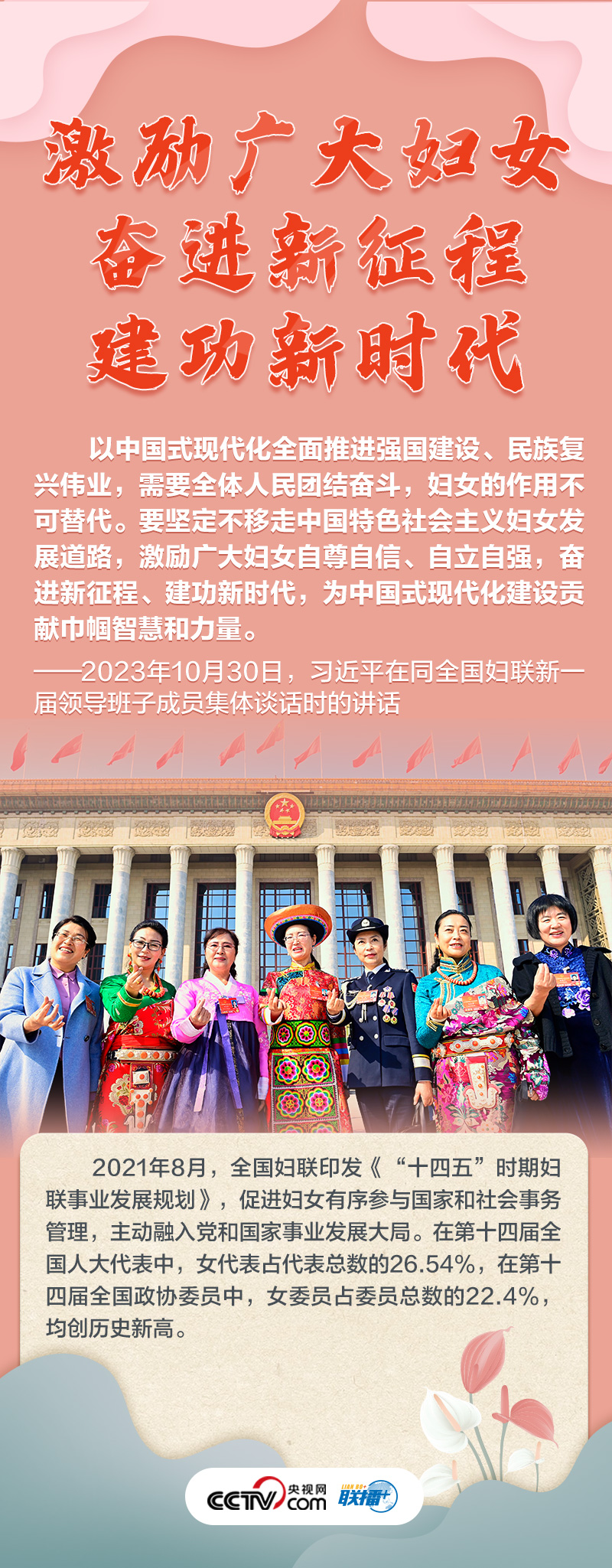 如何做好新时代新征程上妇女儿童工作,凝聚起中国式现代化建设的巾帼力量?央视网《联播+》特推出海报,与您一起了解总书记最新指示,以及近年来妇女事业和妇联工作取得的非凡成就。