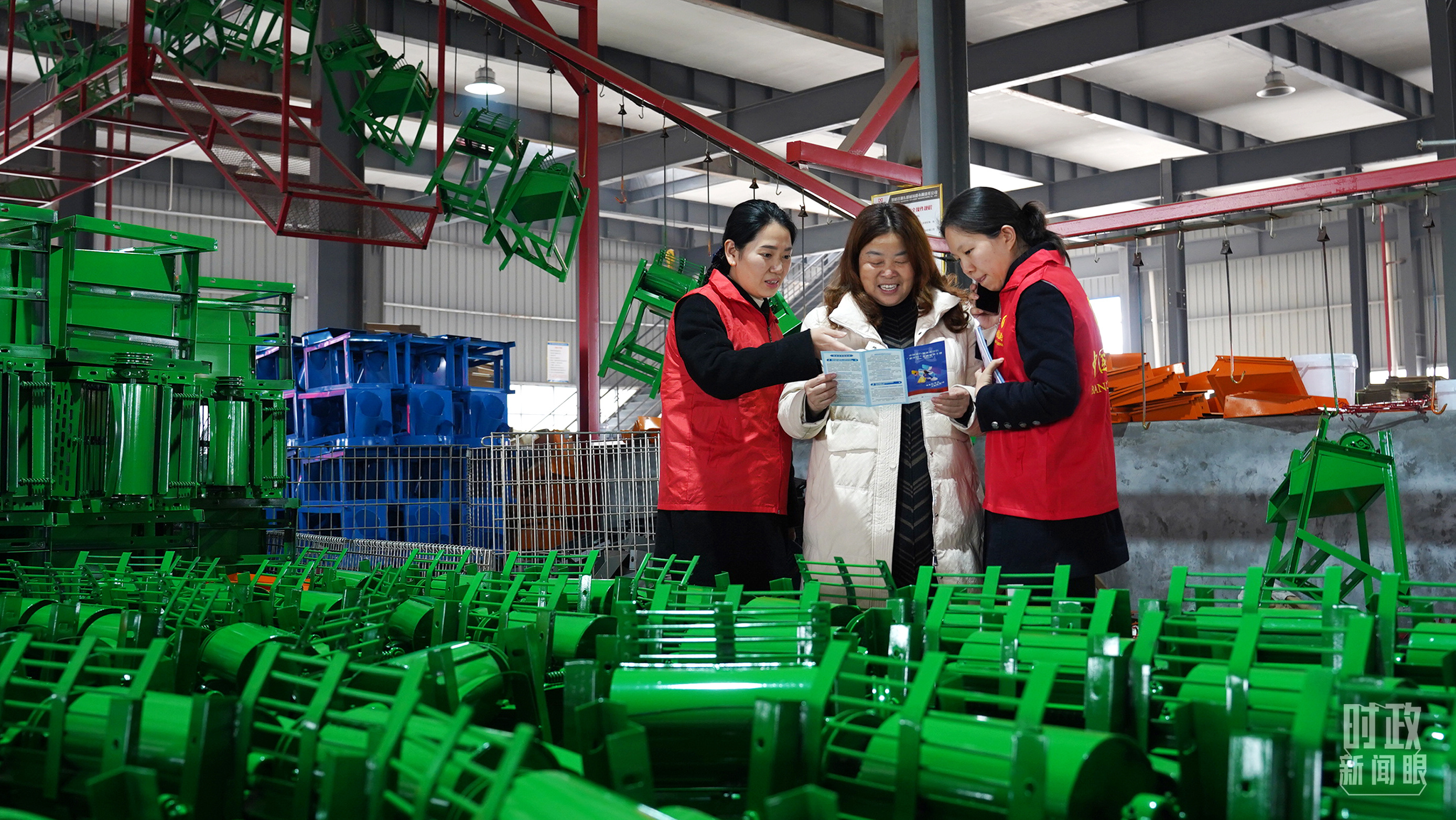 △2023年3月,湖南娄底的银行工作人员正在一家农机企业车间,向企业负责人宣讲普惠金融政策。(图/视觉中国)