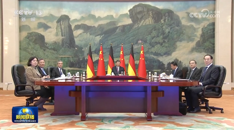 习近平强调,当前国际形势正在发生很大变化,地缘冲突加剧,经济复苏乏力,冷战思维回潮。中国和德国都是负责任的大国,不仅要发展好双边关系、做合作共赢的表率,更要捍卫国际秩序和多边主义,携手应对全球性挑战。中欧关系关乎世界格局稳定和亚欧大陆繁荣,值得双方全力维护好、发展好。中国将欧洲视为全面战略伙伴和多极化中的重要一极。希望德国推动欧盟秉持市场化和公平原则,同中方一道,维护公平市场竞争和自由贸易,维护全球产业链供应链稳定。