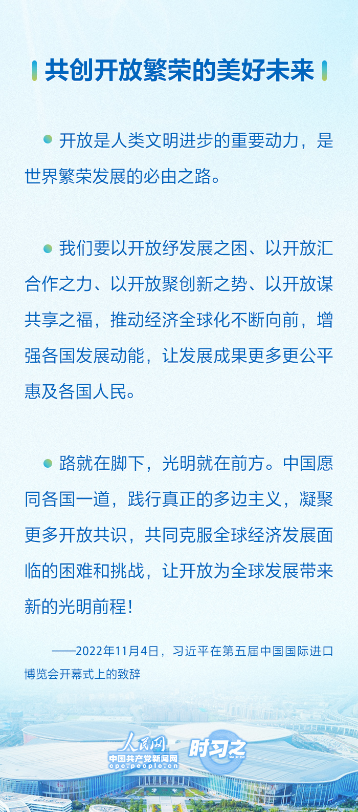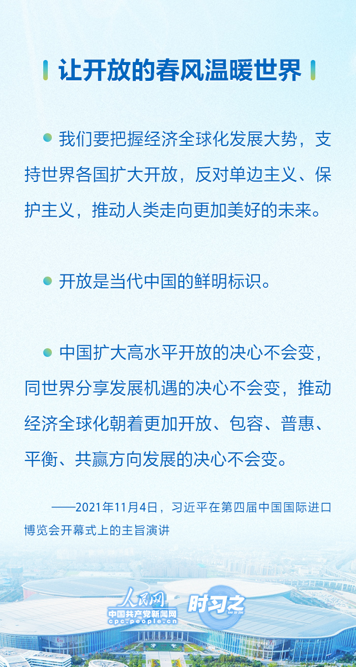 自首届以来,国家主席习近平连续五届出席进博会开幕式并发表重要讲话,宣布中国重大开放举措,展示中国坚定开放决心。