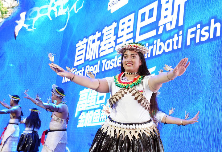 11月8日,来自基里巴斯的参展人员在基里巴斯水产品推介活动上表演。
