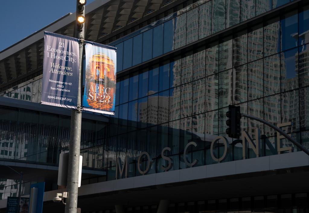 旧金山的亚太经合组织会议场地外的宣传海报。