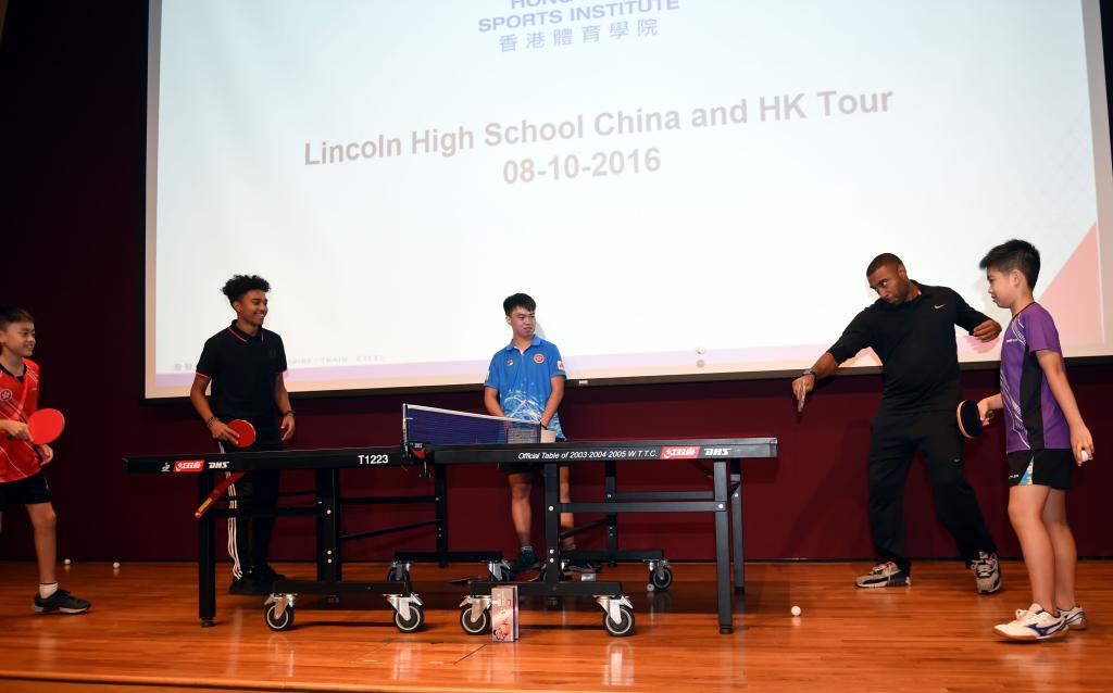 2016年10月8日,香港乒乓球运动员与林肯中学学生进行交流比赛。