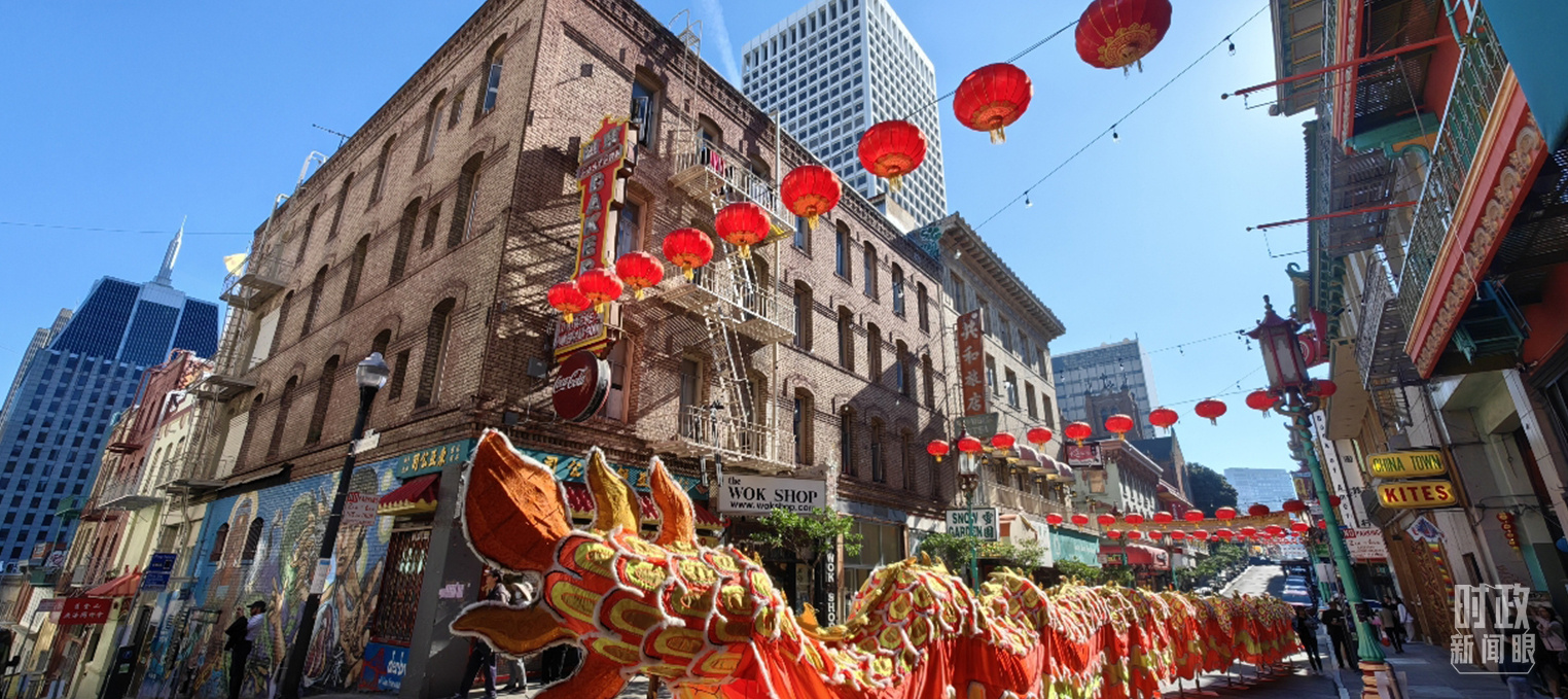△旧金山唐人街的舞龙表演。(总台央视记者杨波拍摄)