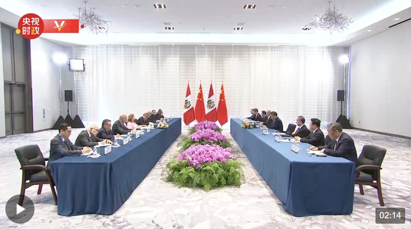 当地时间11月16日上午,国家主席习近平在旧金山会见秘鲁总统博鲁阿尔特。