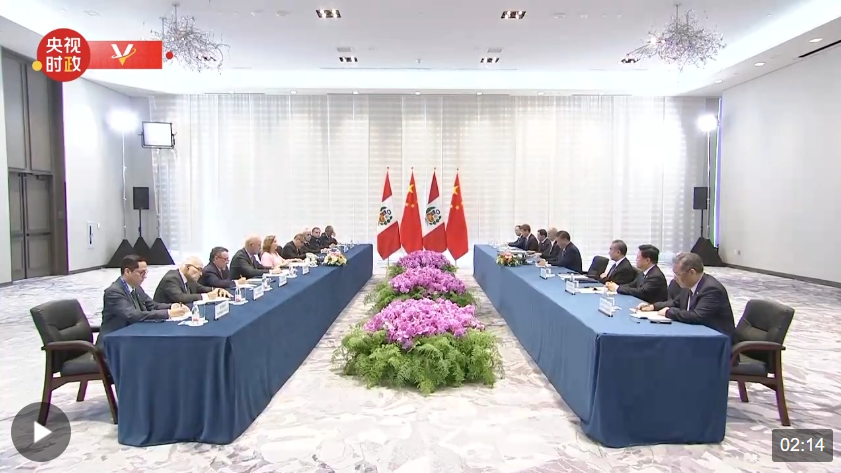 当地时间11月16日上午,国家主席习近平在旧金山会见秘鲁总统博鲁阿尔特。