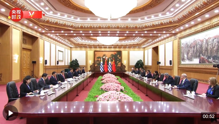 11月22日下午,国家主席习近平在人民大会堂同来华进行国事访问的乌拉圭总统拉卡列举行会谈。