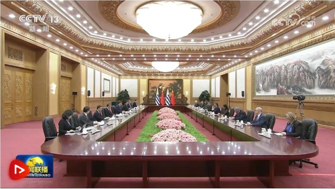 11月22日下午,国家主席习近平在人民大会堂同来华进行国事访问的乌拉圭总统拉卡列举行会谈。两国元首宣布,将中乌关系提升为全面战略伙伴关系。